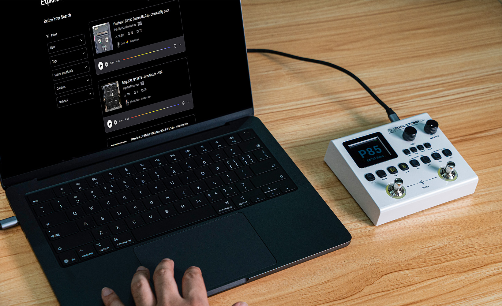 配合PC软件可进行深度编辑、固件更新、NAM/IR 文件导入与备份,轻松批量管理音色。