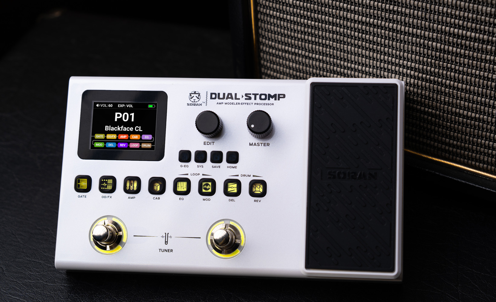 Dual Stomp 是一款为吉他手和贝斯手打造的多功能综合效果处理器,适用于日常练习、乐队排练乃至小型现场演出等多种场景。集便携性、灵活性与专业音质于一体,将完整信号链融入紧凑机身。搭载 DSM 动态频谱建模技术,真实还原电子管音箱的动态与细节,支持 NAM 与 IR 文件导入,拓展无限音色可能。内置 126 种效果、11个模块 可同时运行,配合表情踏板双模切换,带来更自然的实时操控。支持蓝牙与PC 编辑,轻松远程调节与批量管理音色;内置 48kHz/24bit 专业录音声卡与6小时可充电续航,搭配2英寸高清彩色显示屏,操作清晰顺手。从练习到演出,Dual Stomp 让每一次演奏都保持专业水准。