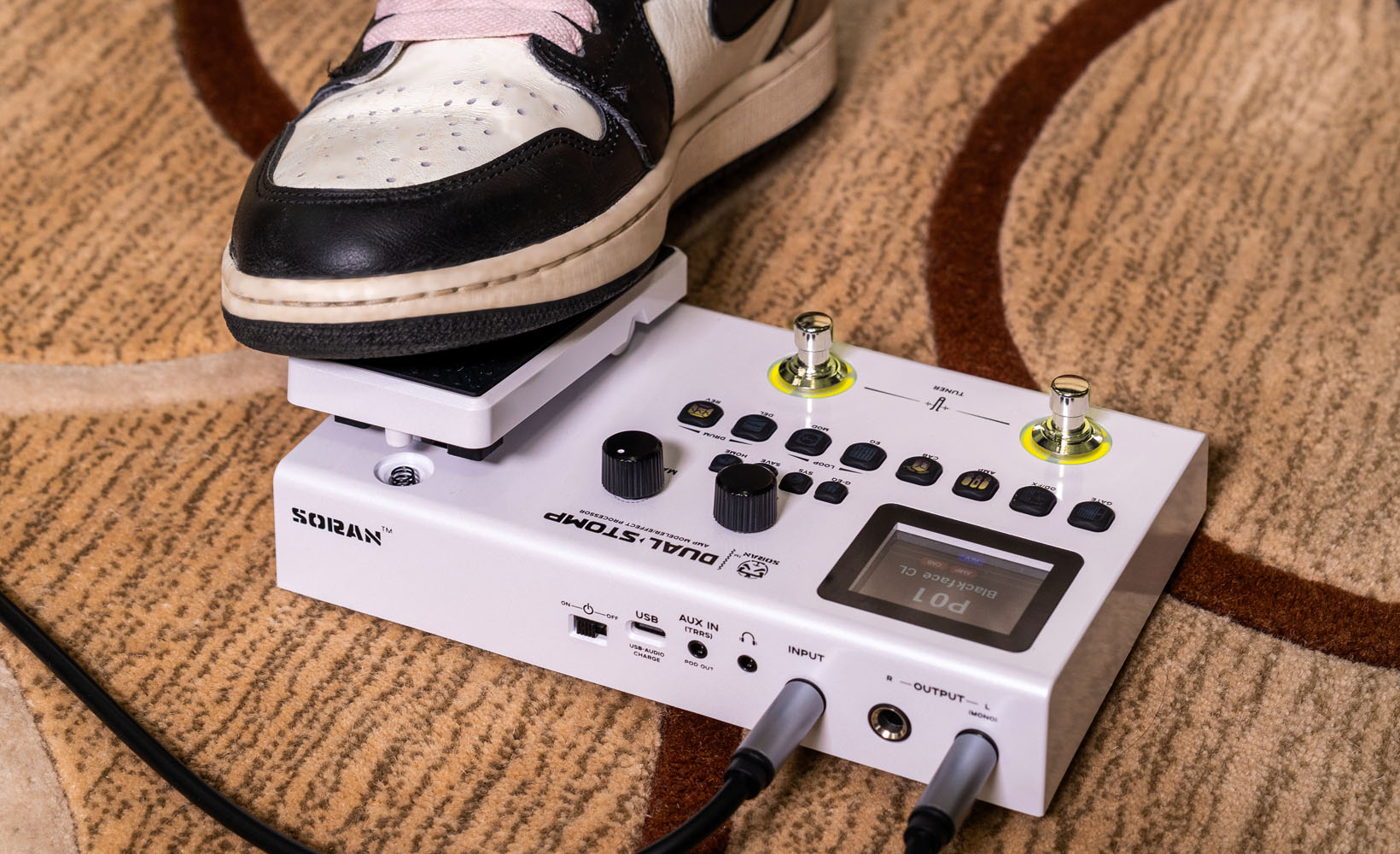 内置表情踏板可在 WAH(哇音)与 VOL(音量)模式间自由切换,实现无手化实时控制。无论录音、练习还是现场演出,都能获得顺畅自然的动态表达。