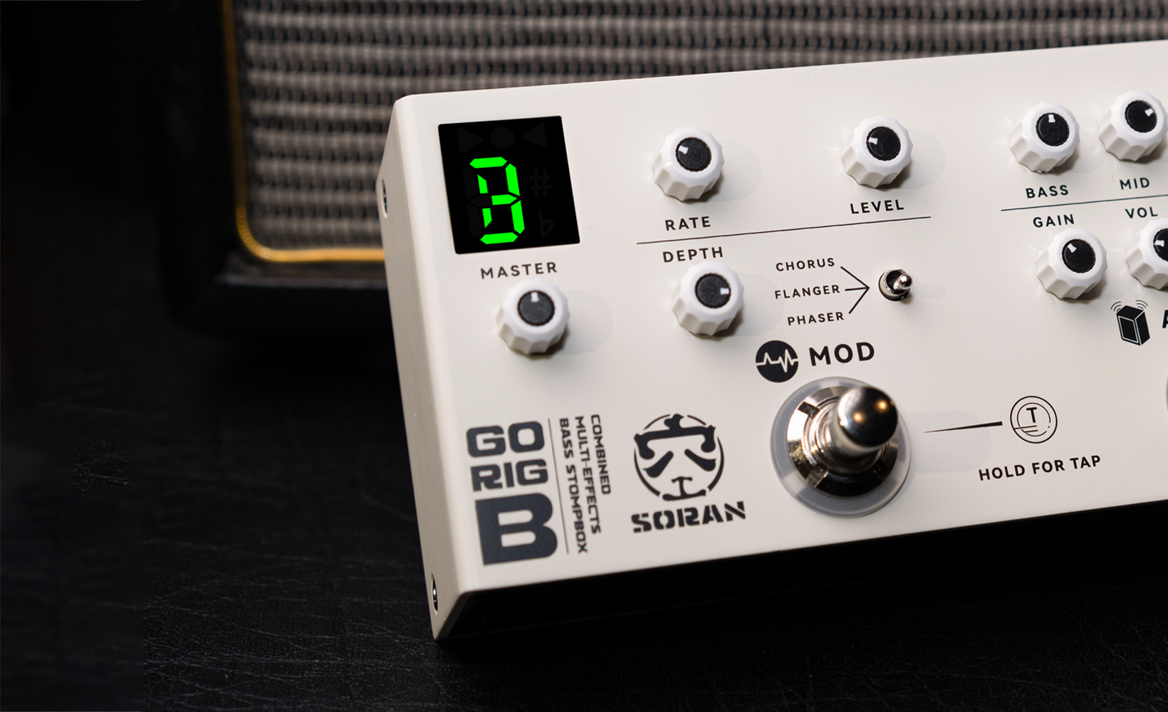 Go Rig B is a compact, multi-function digital effects processor designed specifically for bass players. It combines Compression (COMP), Distortion (DIST), Amp Simulation (AMP), Cab Simulation (CAB), and Modulation (MOD), offering complete tonal support for practice, rehearsals, and live performances. A dedicated bass compressor and three drive types (Drive, Dist, Fuzz) let you quickly shape your tone for any musical style. Three classic modulation effects (Chorus, Flanger, Phaser) with Tap Tempo keep your sound rhythmically aligned and creatively inspiring. With 1/4" and XLR outputs, USB Audio/OTG, Bluetooth, and AUX IN, it connects seamlessly to your gear for recording, streaming, or playing along with tracks. The built-in tuner ensures accurate tuning at all times, while the lithium battery delivers up to 5 hours of play with fast USB-C charging. Its rugged, compact metal chassis is both durable and portable. Whether at home, in the studio, or on stage, Go Rig B provides bassists with a professional, flexible, and convenient tonal solution.