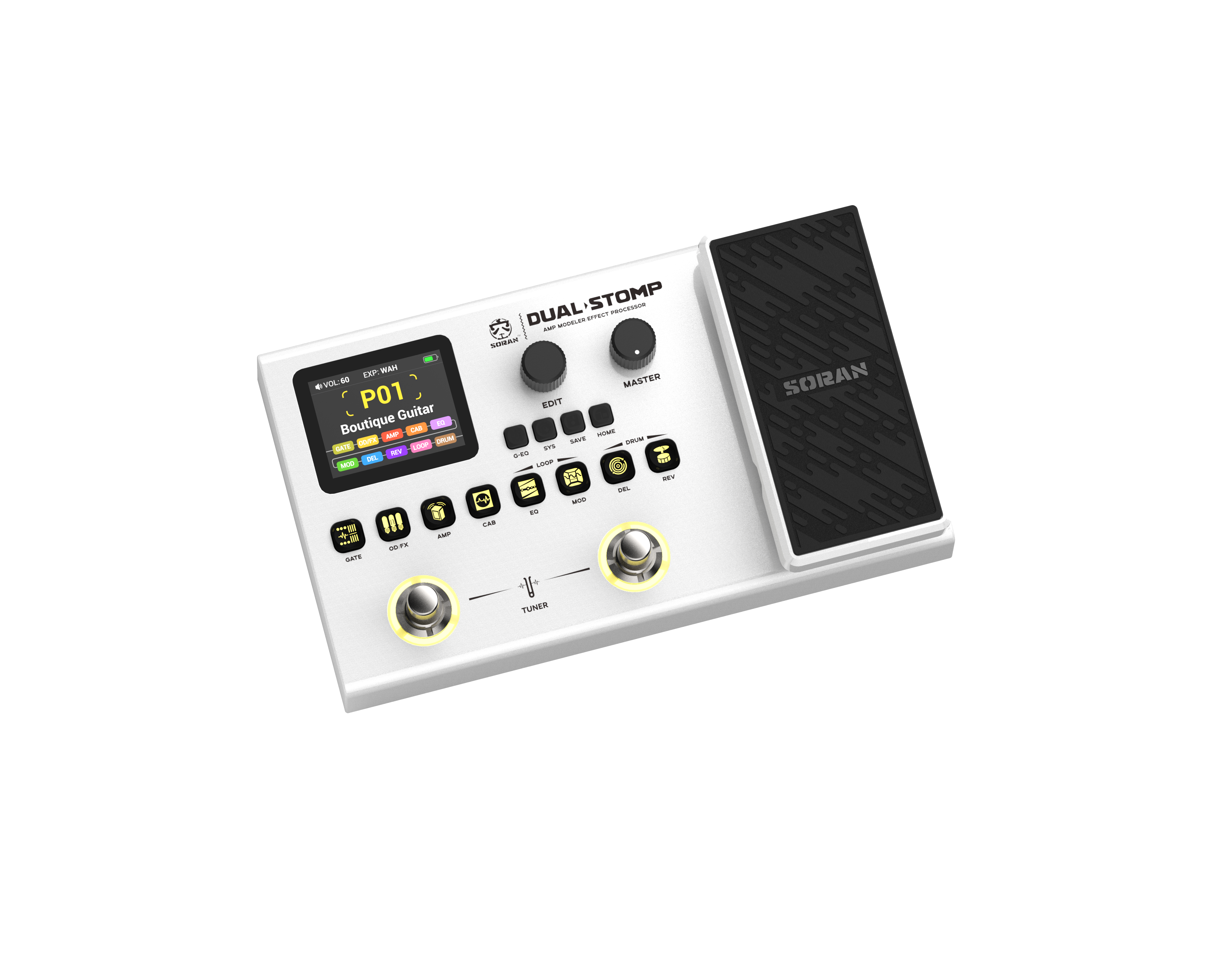 Dual Stomp is a versatile multi-effects processor designed for guitarists and bassists, featuring advanced amp modeling and a variety of effect modules, offering full support for tone creation and performance. With its compact design, powerful sound engine, and versatile connectivity options, Dual Stomp is the perfect companion for practice, creation, and live performance. Whether for tone design, improvisation, or live shows, it has everything you need.