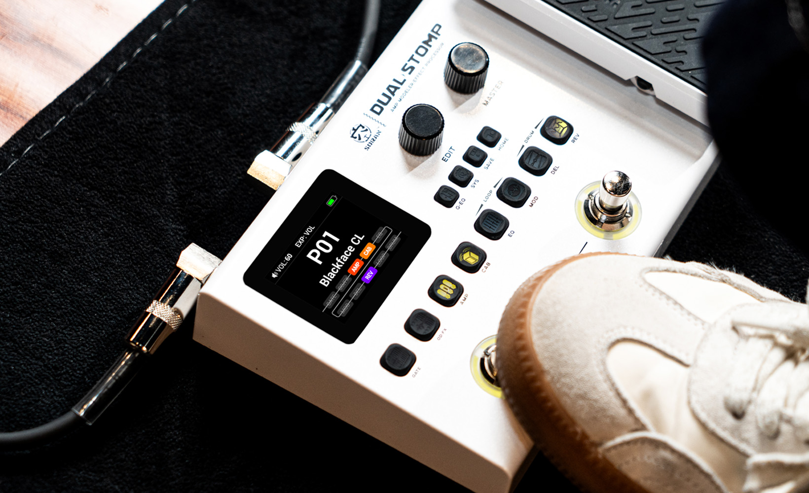 Dual Stomp features a 40-second stereo looper and 100 drum patterns, allowing players to easily layer riffs and build complete arrangements on the fly. The diverse drum rhythms provide instant backing for improvisation, making it easy to capture ideas and keep performances natural and fluid, whether practicing, recording, or creating.