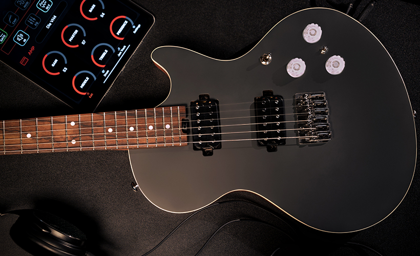 Equipped with a complete multi-effects engine built into the guitar, including NG, COMP, EFX, AMP, IR, MOD, Delay, Reverb, and Drum — a total of 9 effect modules.
